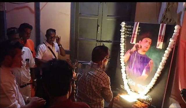 Guwahati: The much-anticipated Golden Jubilee Durga Puja festivities organized by the Sarbojonin Durga Puja Committee of Barapani Market commenced with great pomp and deep devotion at D-Sector, Naharlagun. The celebrations were inaugurated with a respectful tribute to the iconic singer Late Zubeen Garg, setting an emotional and auspicious tone for the landmark event.