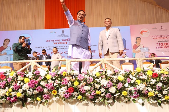 Moran: In an attempt to reaffirm the state government’s commitment to inclusive development, women's empowerment, and infrastructure growth, Assam Chief Minister Himanta Biswa Sarma held a major public meeting at Abhaypur Playground in Moran. The event witnessed the launch and inauguration of several key initiatives aimed at strengthening livelihoods and civic facilities in the region. The meeting was attended by several other esteemed members of the state government, including Minister of Information, Public Relations, Pijush Hazarika and Minister of Industries & Commerce and Public Enterprises, Bimal Borah.