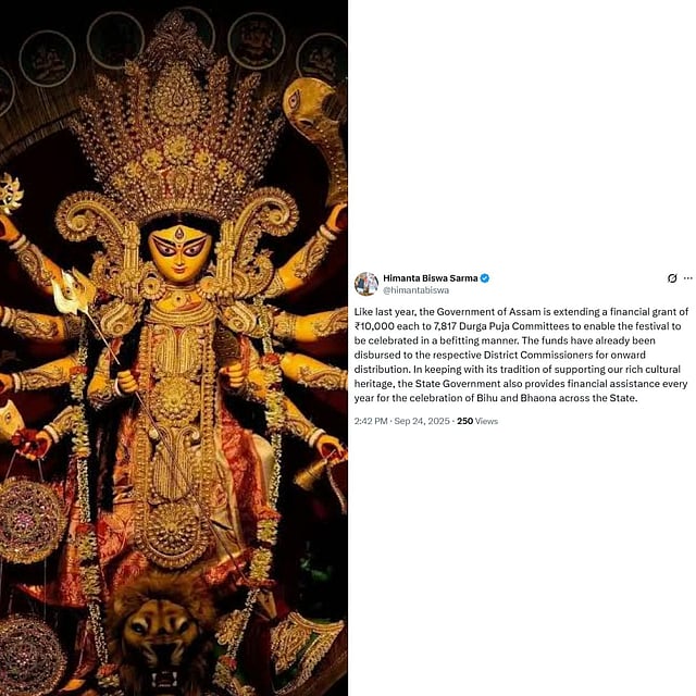 Guwahati: Assam Chief Minister Himanta Biswa Sarma on Tuesday announced that the State Government has sanctioned a grant of Rs. 10,000 each to 7,817 Durga Puja committees across Assam.