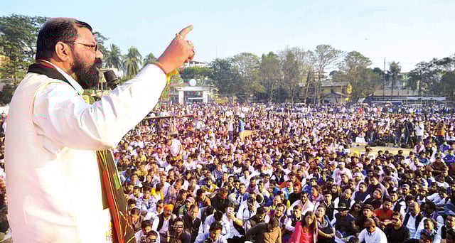 GUWAHATI: Historic Latasil playground in Guwahati, where the Axom Chatra Xanmilani had been formed some 102 years ago, bore witness to the Bajra Ninad (thunder) of the AASU and 30 other organization leaders with clenched and raised fists on Wednesday.