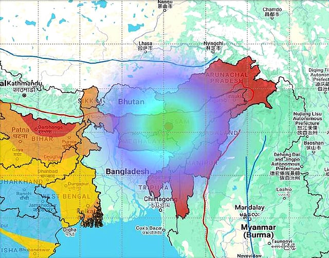 The earthquake was widely felt across Assam and neighbouring states, with calculated intensities ranging from II to V on the Modified Mercalli Intensity (MMI) scale within a distance of approximately 0 to 300 km from the epicentre. A total of 37 felt reports were received through the NCS website and mobile app, indicating intensities between III and VI on the MMI scale.