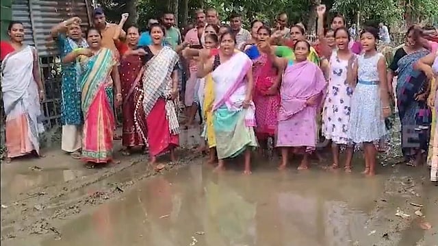 Bajali: Anger spilled onto the streets in Kathalmuri village of Bajali district on Friday as residents staged a protest against the incomplete road project that has remained stalled for over two years.