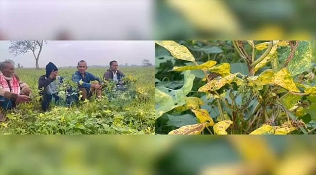 The yellowing seen in the fields has been identified as yellow mosaic disease, a virus transmitted by whiteflies. Experts say it can lead to 50–70 per cent crop loss, especially when it spreads during the early growth stages. The disease first appears as small yellow patches on young leaves, gradually spreading until the leaves dry and fall off. Infected plants mature late, resulting in poor yield both in quality and quantity.