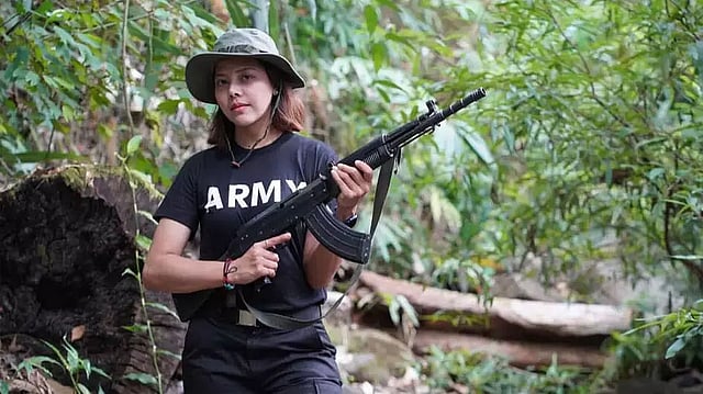 The former beauty queen recently posted her pictures with an assault rifle in her Burmese Facebook page, in which she wrote: "The time has come to fight back. Whether you hold a weapon, pen, keyboard or donate money to the pro-democracy movement, everyone must do their bit for the revolution to succeed."
