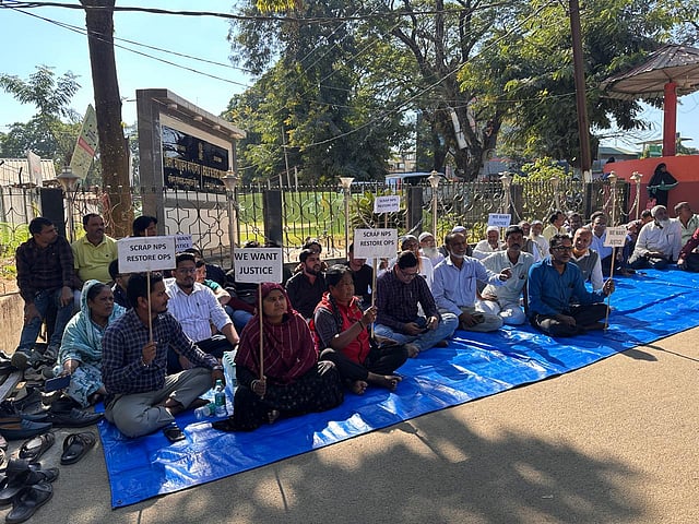 The employees staged a sit-in protest, carrying placards and protesting against what they termed ‘financial insecurity’ under the New Pension Scheme in place since 2005. The protesters pointed out that the NPS has left many retired employees struggling to meet the necessities of life, prompting widespread calls for a return to the traditional pension structure.
