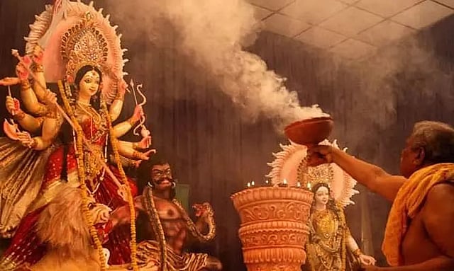 As the evening descended, illuminated idols of Goddess Durga drew thousands, celebrating her victory over evil, a metaphor embraced by many as a call for unity and resilience.