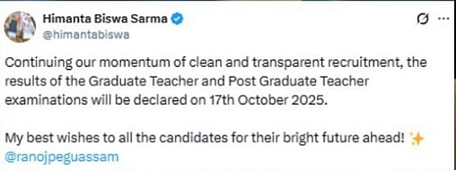 Chief Minister Himanta Biswa Sarma shared the update on X (formerly Twitter), reaffirming the government’s commitment to transparent recruitment practices.