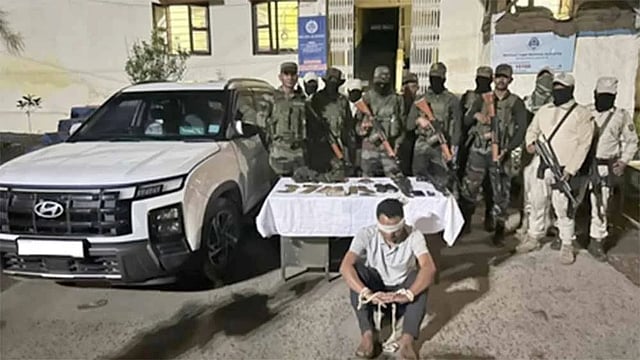 He was also involved in extortion activities. Two AK-47 rifles with two magazines, 31 7.62 AK-47 rounds, 150 rounds of 7.62 SLR and LMG, cash amounting to Rs one lakh, a bullet-proof pouch, a car, and two mobile phones were also seized.