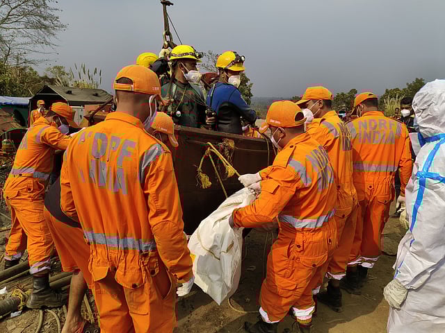 Haflong: The Umrangso coal mine tragedy of January 6, 2025, came to a close today after all the remaining five decomposed bodies of trapped coal mine workers were recovered. More than fifty rescuers comprising NDRF, SDRF, GR, and the Army had been operating the rescue operation since January 7th. Despite various challenges, these rescuers have recovered the bodies of trapped miners from the flooded rat hole mine Kalamati in the Umrangso area of the Dima Hasao district.