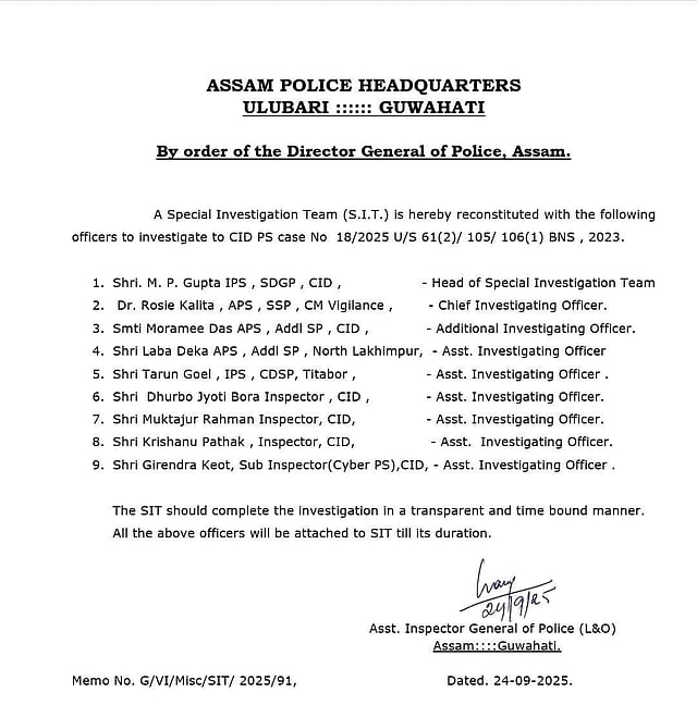 Guwahati: The Assam Police Headquarters in Ulubari has reconstituted the Special Investigation Team (SIT) probing the CID-registered case into the untimely demise of singer and cultural icon Zubeen Garg. The decision follows growing concerns over impartiality after it emerged that SIT member Parmita Sarkar shared close personal ties with Zubeen’s cousin, Samdipon Garg, who was present during the incident in Singapore.