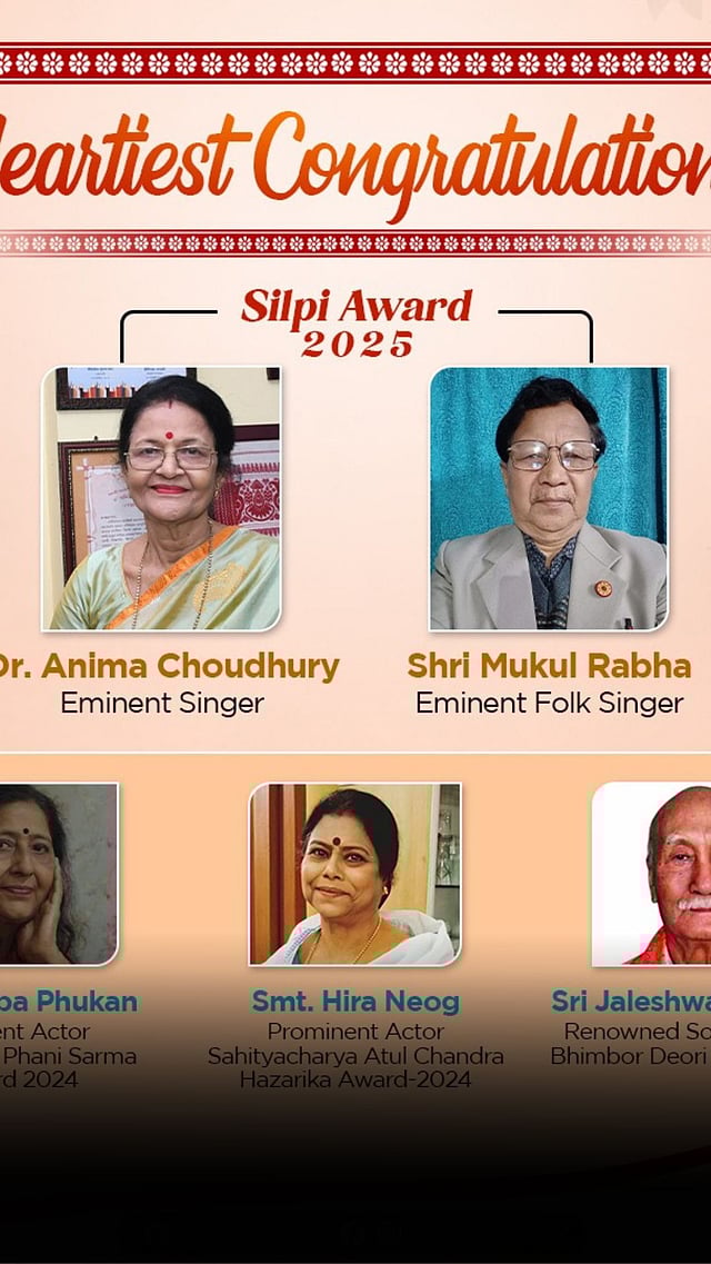 The Minister stated that all four awards will be presented on January 17 at the Silpi Diwas celebration in Golaghat, which commemorates the death of Jyoti Prasad Agarwala, the doyen of Assamese cinema.