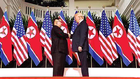 সিঙ্গাপুরঃ কোরীয় প্ৰণালী এখন থেকে সম্পূর্ণ পরমাণু মুক্ত হচ্ছে। মার্কিন প্ৰেসিডেন্ট ডোনাল্ড ট্ৰাম্প ও উত্তর কোরিয়ার সর্বেসর্বা কিম জংউন মঙ্গলবার সিঙ্গাপুরের এক ঐতিহাসিক বৈঠকে পরমাণু নিরস্ত্ৰীকরণে সহমত ব্যক্ত করায় দুদেশের বিবদমান সমস্ত সংঘাতের অবসান ঘটে। বৈঠকে দুদেশের মধ্যে একটি গুরুত্বপূর্ণ চুক্তিও স্বাক্ষরিত হয়। বৈঠকে পিয়ংইয়ংকে নিরাপত্তার নিশ্চয়তা দিয়েছেন ট্ৰাম্প। দুদেশের মধ্যে সম্পর্কের উন্নাত ও দ্বিপাক্ষিক সম্পর্ককে মজবুত করারও অঙ্গীকার করেছেন উভয় রাষ্ট্ৰপ্ৰধান।