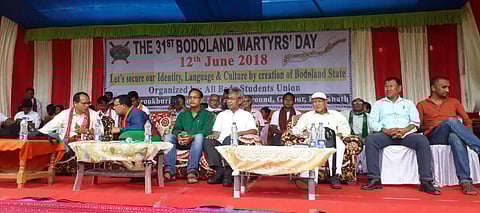 KOKRAJHAR, June 12: The All Bodo Students’ Union (ABSU) centrally observed the 31st Bodoland Martyrs’ Day at Borpukhuri, Gohpur in Sonitpur district on Tuesday in commemoration of the great heroes who laid down their valuable lives for creation of Bodoland. The president of the ABSU, Promod Boro said in a statement that during the six-year Bodoland movement from 1987-1993, 1,135 Bodo people were martyred, out of which 535 were from Gohpur. On June 12, 1987, Sujit Narzary, a Class IX student of Bhatipara, Kokrajhar was killed by the anti-Bodoland miscreants while returning from a democratic non-violent rally held at Judge’s Field, Guwahati. Since then this day is observed as Bodoland Martyrs’ Day.