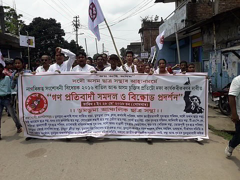 DEMOW: Under the banner of All Assam Students’ Union (AASU), Demow Regional Committee with Demow Xahitya Xabha, All Tai Ahom Students’ Union (ATASU), Demow Handball Club, All Assam Bengali Youth Students’ Federation (AABYSF), Demow Regional Committee, Brihattar Asomiya Yuba Mancha (BAYM), Marwari Yuba Mancha, Mahila Samittee, Demow Nagarik Mancha, Dehajan and Dekhari Sadar Masjid Committee, All Adivasi Students’ Association of Assam (AASAA), e-Rickshaw Association, Banamali Cultural Group, Swarna Silpi along with other organizations of Demow took out a protest rally on Monday from Demow Public Playground throughout Demow against the Citizenship (Amendment) Bill 2016. In the protest rally, Sarat Hazarika, Education Secretary of AASU, Gobin Phukan, Adviser of Sivasagar District Students Union along with other organizations leaders of Demow were present.