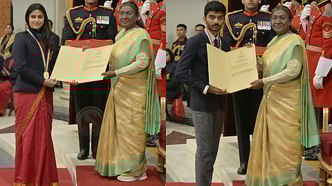 Bhaker, who made history by becoming India's first athlete to win two medals in a single Olympics, was awarded the Major Dhyan Chand Khel Ratna, alongside Gukesh, men’s hockey captain Harmanpreet Singh, and Paralympic gold medalist high jumper Praveen Kumar.