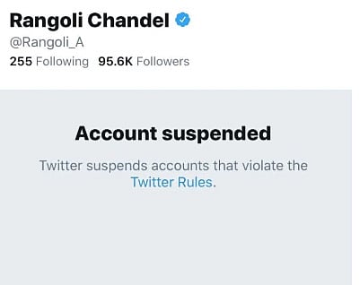 GUWAHATI: Twitter has suspended Rangoli Chandel's account after she posted the following tweet.