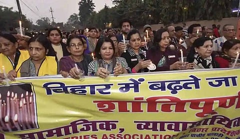 Contrary to the claims of good governance by Bihar Chief Minister Nitish Kumar, several businessmen have been shot dead in broad day light in different parts of the state. Angry over the killings, hundreds of businessmen and traders took out a candle march in Patna on December 24. Bihar Opposition Leader Tejashwi Yadav had joined the march. Protesting businessmen and traders shouted slogans and demanded the arrest of the criminals involved in the killings. (IANS)