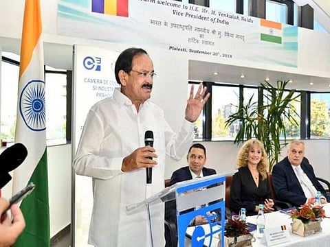 Bucharest: Projecting India as an attractive investment destination and its booming economy, expected to touch $5 trillion marks by 2025, Vice President M. Venkaiah Naidu on Thursday invited Romanian investors to be part of the growth story. Addressing the India-Romania Business Forum Meeting here, Naidu called for further scaling up of the already robust annual bilateral trade that has risen to $810 million in 2017-18. “Our annual bilateral trade has risen to $810 million in 2017-18, a 40 percent increase over last year ($575 million). This is a huge development in our bilateral economic relations. We need to sustain this momentum to scale it up even higher,” he said.