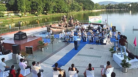GUWAHATI: The Air Force Band performed Live Concert at War Memorial, Dighali Pukhuri in Guwahati today as part of nationwide celebration of Independence Day 2020 and also to honour and salute COVID Warriors. A total of 26 COVID warriors from COVID Care Hospitals attended the live band concert duly maintaining all protocols. The Air Force Band played mesmerizing tunes in line with the surrounding picturesque Memorial and lake and was greatly appreciated by all. The COVID warriors expressed their heartfelt gratitude to the Armed Forces for encouraging them and boosting their morale while performing their duties.