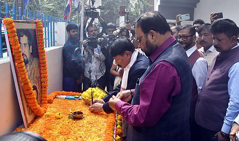 Guwahati: The Asom Gana Parishad remembered one of its founders and former general secretary of the party, Nagen Sharma, on his 24th death anniversary. The memorial event was organised at the party head office located in Guwahati's Ambari locality and was initiated by the former leader's wife, Dr. Alaka Desai Sharma. Party president Atul Bora and working president Keshab Mahanta were present at the event. They paid homage to the late Nogen Sharma. A ceremonial Naam-Prasanga was also organised in the morning.