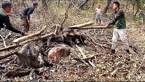 PALASBARI: A highly decomposed carcass of a wild elephant was discovered in the remote Deopahar area of Rani Reserve Forest. The elephant is suspected to have been poached about a month ago. Several parts of the elephant’s body were missing, raising suspicions of illegal hunting. According to sources, poachers may have slaughtered the elephant on-site and dried the meat before transporting it.