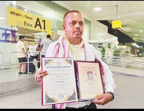 PALASBARI: Global Chambers of Commerce, Industry, and Agriculture and Integrate Global University, at the third annual initiation ceremony organised by the Joint Indo-Nepal Leadership Convent of the Governments of India and Nepal in Kathmandu, Nepal University, New Delhi, recently conferred an honorary doctorate on Tapan Mali, a resident of Palasbari LAC under the Kamrup district in Assam.