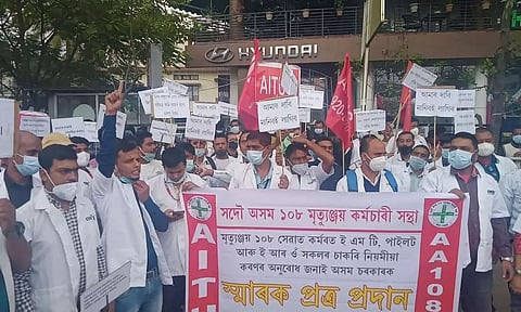 There are about 3000 workers working with the 108 Mritunjay ambulance service of Assam.