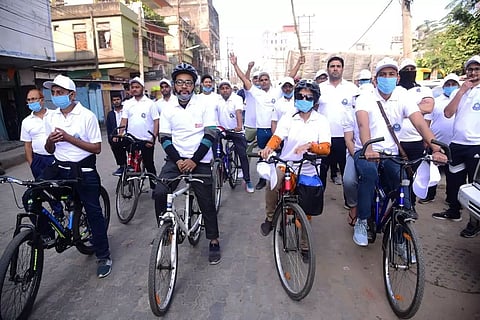 GUWAHATI: The GST Bhawan, Guwahati organized a rally consisting of cyclists and runners as part of their new Go Green Initiative which aims to encourage officers to cycle, carpool or use public transport for commuting to office at least once a week for reducing carbon emissions and promoting green-urban mobility. The motto adopted by the rally was Amar Pariyaboron, Amar Dayitwa, AmarJagoran, borrowed from Assamese ideas on environmental conservation.