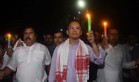 Led by APCC president Gaurav Gogoi, the procession saw the participation of hundreds of Congress workers and senior leaders, who lit candles as a mark of solidarity and remembrance for the late singer.