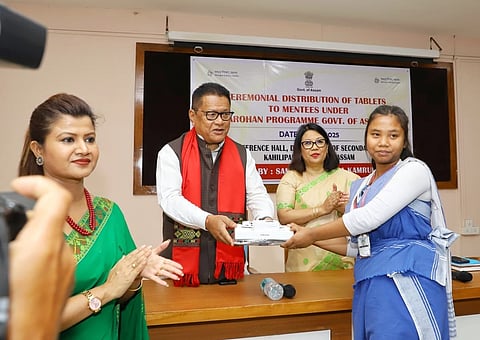 GUWAHATI: Education Minister Dr Ranoj Pegu distributed tablets among 116 meritorious students under the Arohan Scheme at the Directorate of Secondary Education conference hall in Guwahati today.