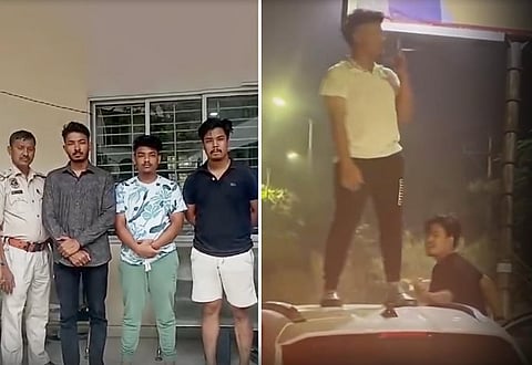 GUWAHATI: Panbazar traffic police arrested three youths for performing daredevil stunts on a moving vehicle near Jayanagar on Thursday night. The accused, identified as Raj Malakar, Fardin Firoj, and Kavya Pallov Barua, are students from different educational institutions. According to eyewitnesses and the viral video circulating on social media, Fardin was seen smoking a cigarette while standing on the car Raj was driving, and Kavya Pallav was precariously positioned on the open door.