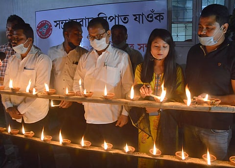 People also paid tributes by lightning candles and earthen lamps in Panbazar and CJM Court premises.
