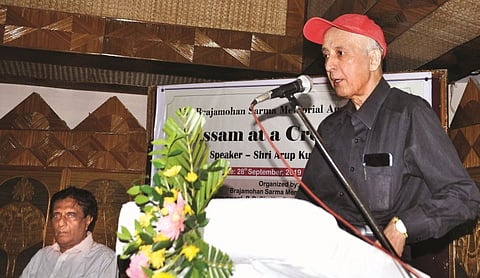 GUWAHATI: “Truly, today Assamese society is at a crossroads, and there’s no telling which direction it will take in the future. There is an urgent need to take the reins of political power back into our hands in order to impose a central, unifying authority, but the manner in which the present scenario is unfolding, that seems to be a far cry. At a time when Assamese nationalistic organizations, institutions and forces need to be strengthened, they are instead being weakened.” said Padma Shri writer Arup Kumar Dutta, a journalist and writer, while delivering the Brajamohan Sarma Memorial Annual Lecture as the chief speaker on ‘Assam at a Crossroads.