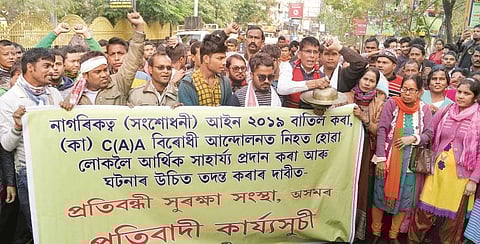 GUWAHATI: The Pratibandhi Suraksha Sangstha, an organization of physically challenged persons on Saturday took out a procession in the city to registrar its strong protests against the Citizenship (Amendment) Act (CAA).