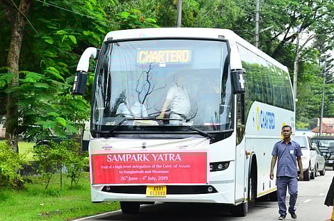 GUWAHATI: The delegation of the bus tour to Bangladesh and Myanmar, named as Sampark Yatra, left for Bangladesh from Assam Administrative Staff College, Khanapara early Wednesday morning.