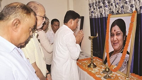 GUWAHATI: The State BJP condoled the death of former Union Minister Sushma Swaraj at meet at its party headquarters here on Wednesday. State BJP president Ranjeet Kr Dass presided over the meeting and said, “In her death, the country has lost an eminent leader who was out and out a true nationalist. Sushma Swaraj was a politician whose humanitarian values made her a national leader.” Ministers Ranjit Dutta, Pijyush Hazarika, Ex MP Bijoya Chakraborty, BJP national secretary Ramen Deka, among others were present during the meet. Ramen Deka said, “Sushma Swaraj was a strong lady with very good oratory skills, yet she was very polite. She also maintained very good relation across all the political parties. Her death ‘is an irreparable loss to the nation. She was an impressive parliamentarian and an ideal woman who showcased excellence at every front. She also earned a good name as an extra ordinary minister for external affairs.” Industries and Commerce Minister Chandra Mohan Patowary has also deeply condoled the demise of Swaraj.