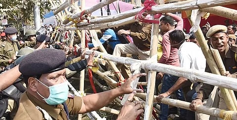GUWAHATI: On the last day of last session of the 14th Assam Legislative Assembly (ALA) three organizations continued to stage dharna at Dispur Last Gate on Saturday.