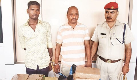 GUWAHATI: A train checking party recovered nine packets of suspected ganja (cannabis) from two people identified as Sanjay Mandal, 42, of Saidpur, Bihar and Naresh Mandal, 26, of Narayanpur, Bihar. Approximately 10 kg of suspected ganja was recovered from their possession. The two were aboard Rajdhani express and a GRP case has been registered against them.