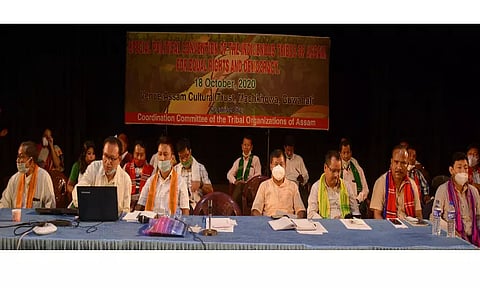 The organizations got into a huddle in Guwahati under the CCTOA at a meeting presided over a presidium comprising AATS (All Assam Tribal Sangha) president Milan Sonowal, ABSU (All Bodo Students' Union) president Dwipen Bodo, TMPK (Takam Mising Porin Kebang) president Rajkumar Morang and ARSU (All Rabha Students' Union) president Nripen Khanda.