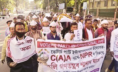 GUWAHATI: Terming the democracy as fake, the Voters Party International (VPI) took out a ‘Smashan Yatra’ from Gauhati Club to Uzan Bazaar Ghat and immersed a ‘symbolical democracy’.