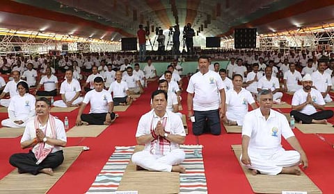 CM Sonowal participates in the 5th International Day of Yoga at Sarusajai Stadium in Guwahati