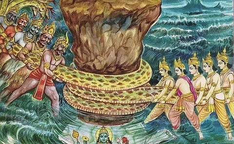 Samudra Manthan is an important mythological event in which Gods and Demons together churned the ocean to obtain the pure and invincible Amrit (nectar), the drink of life to save creation. Similarly, today the need of the hour is for another Manthan to churn out the purity of human values from our own folk tradition "Lok Manthan" to revive the lost heritage of unity and harmony amidst our diverse Bharatiya culture and tradition. "Lok Manthan" is a true effort to revive the cultural values and nothing better than folk can touch the hearts of the Homo Sapiens by ushering in the Golden Era of Bharatiya culture through this beautiful pedestal of "Lok Manthan".