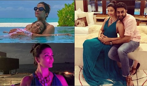 Actor Abhishek Bachchan, who is celebrating his 12th wedding anniversary in the Maldives, has posted a photograph his “girls” — wife Aishwarya Rai Bachchan and daughter Aaradhya — enjoying quality time in the pool.