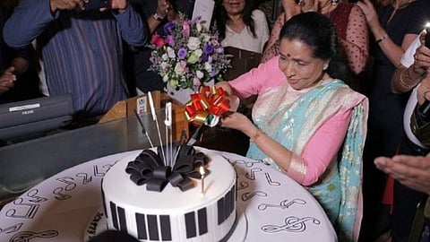 Veteran singer Asha Bhosle celebrated turning 86 in Dubai with close friends and family. A lot of pictures from her September 8 bash have surfaced online, in which the legendary singer is seen cutting a cake, donning pink and blue sari.