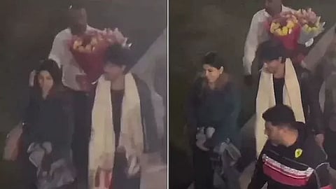 In the videos, King Khan could be seen receiving a grand welcome in a hotel in Kashmir. He donned an all-black outfit with a white shawl around his neck.