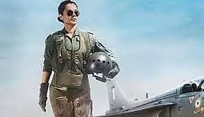 From the word go, the teaser dives into the slow build up of action and it opens with a long shot of an aircraft hangar with its gates slowly sliding open as an Indian Air Force aircraft makes its way out. It then cuts to a shot of Kangana in silhouette inside a locker room taking out her dog tag chain and wearing it, The viewers then get to see her titular character’s name on her uniform, Tejas Gill. The shot is then intercut with that of the aircraft taxiing out of the hangar.