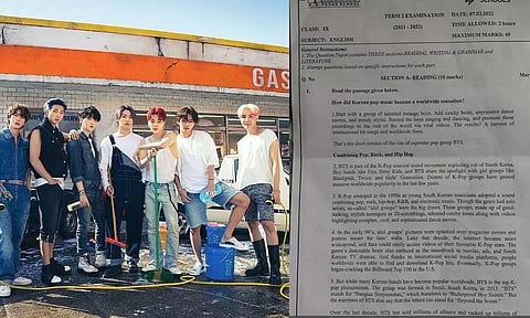The photo showed that the English exam paper of CBSE class 9 had the first question as a comprehensive passage with BTS and its popularity as the subject.