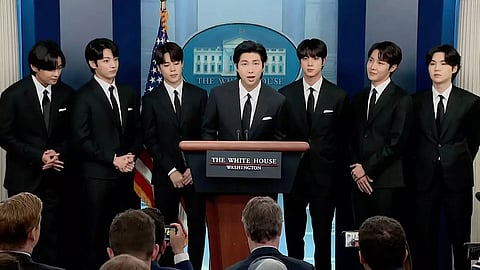 Press Secretary Karine Jean-Pierre introduced the group and RM kicked off the press conference in English by introducing themselves and thanking the White House and Biden for the opportunity to speak on "the important issues of anti-Asian hate crimes, Asian inclusion and diversity," reports 'Variety'.