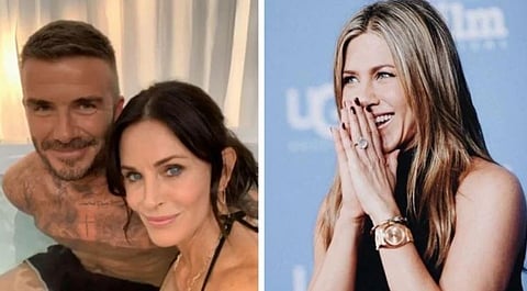 Actress Courtney Cox posted two photographs on social media with former football superstar David Beckham on the set of “Modern Family”, and this has “confused” her “Friends” co-actor Jennifer Aniston. The photos were accompanied by the background music from James Brown’s “Celebrity Hot Tub” and the caption: “Too hot in the hot tub! #modernfamily.”