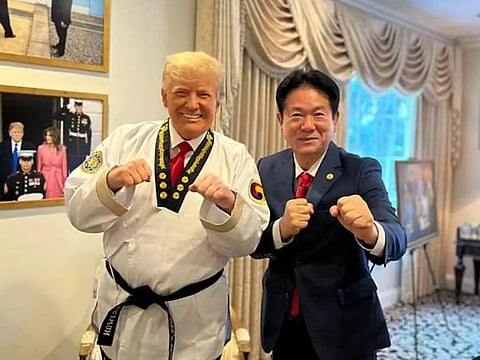 The organisation's president, Lee Dong-seop visitited Trump's residence in Florida on November 19 to present him the black belt.